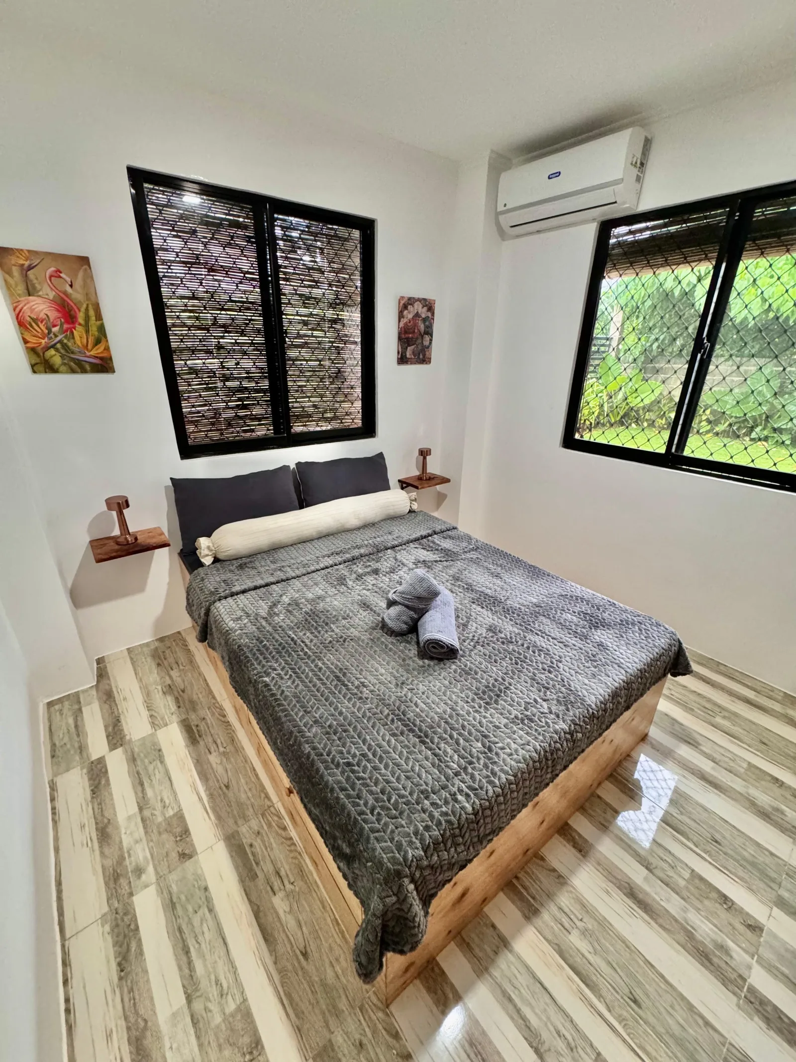 Filled with natural light, Celeste is a bright and airy space defined by clean lines and warm wood framing. The minimalist design creates a peaceful, open atmosphere, making it a perfect retreat for rest and clarity.